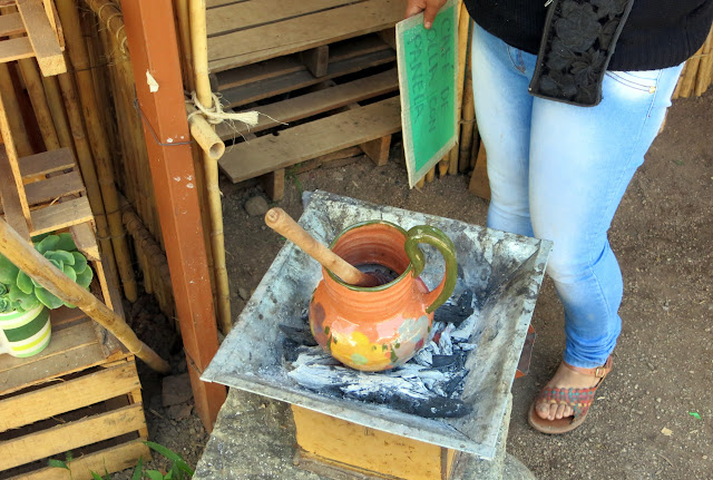 I returned and got it then hopped back on the bus. On the way over to the restaurant, I saw the Bichon Bus from Patagonia Argentina still parked in the same spot while selling T Shirts and a Photo Book of their trip. Mantu, the husband explained the money they make goes for gas and maintenance which right now the bus needed before they could move on to their ultimate destination...Alaska. They left in 2005 so it has been 11 years to get to Oaxaca but Mantu said they have been taking their time and enjoying the people they meet and the experiences along the way. The book documented Mantu, his wife and their child's journey. I bought it for $25. Beautiful Photography and their story in English and Spanish. Wonderful family.