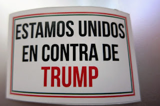 We started the party with Bill trying to open up the Pinata of Donald Trump (popular Pinata in Mexico these days).Give it your best try Bill. (click to see). Bill passed the baton after about 5 tries...he was blindfolded in the beginning....until anxious participants beat the hell out of the Pinata and candy flowed...along with stick on messages for everyone that said ESTAMOS UNIDOS EN CONTRA DE TRUMP...I think means we stand united against Trump.
