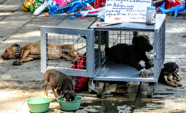 I did get out of the house and have coffee at the Bakery today. While passing through the Zocalo, I debated adopting a Squadron of Doggies.