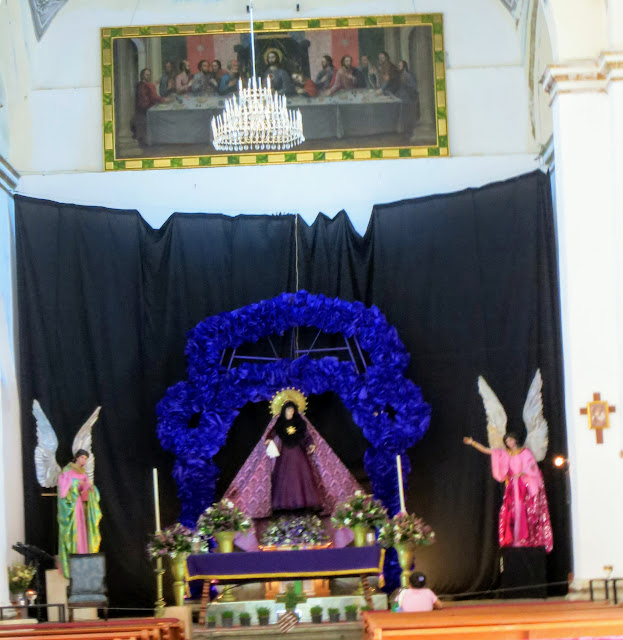It was such a pleasant day today. The weather has cooled to perfect! I took the bus to the library so I could drop off some donations for there Garage Sale to raise money to complete the roof. I stopped at the ATM to take out some more money...now at a higher rate since the dollar went down. I didn't have enough to pay for the Matting and no Credit. Easter Decorations were up everywhere for the Holy Week Ceremonies. All church doors were left open.